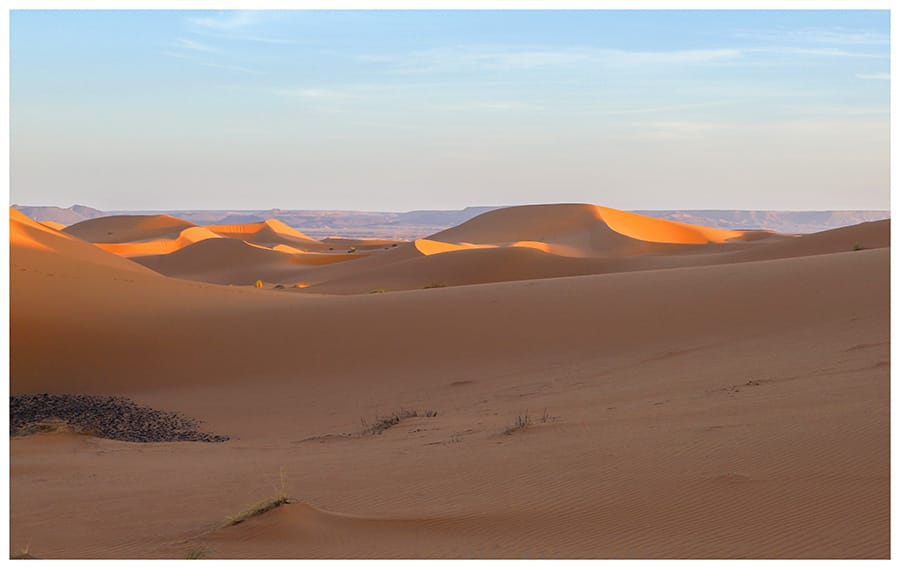 El desierto de Merzouga es el desierto que rodea al pueblo de ese nombre. Está situado al sureste de Marruecos, muy cerca de Argelia y es la frontera oriental del Sahara.